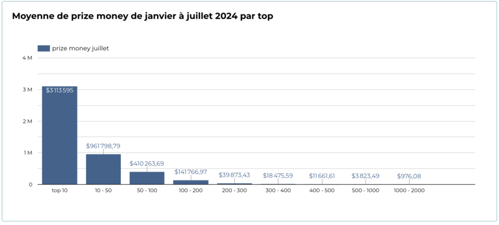 Prize money moyen depuis le début d’année (janvier à juillet 2024) :